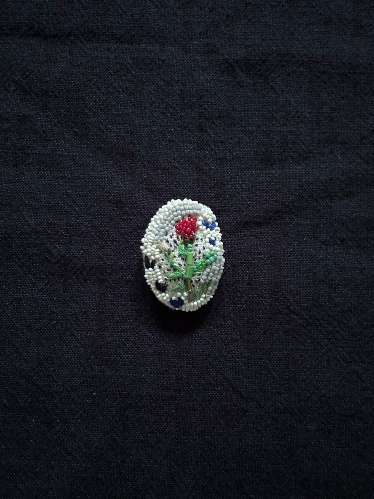 小さなアンティークビーズと刺繍で仕立てました。