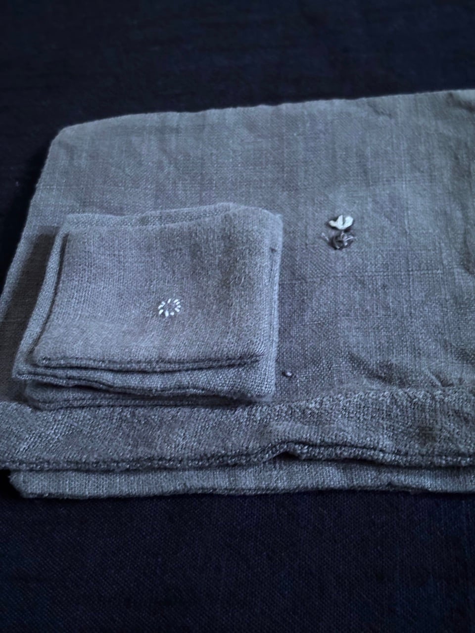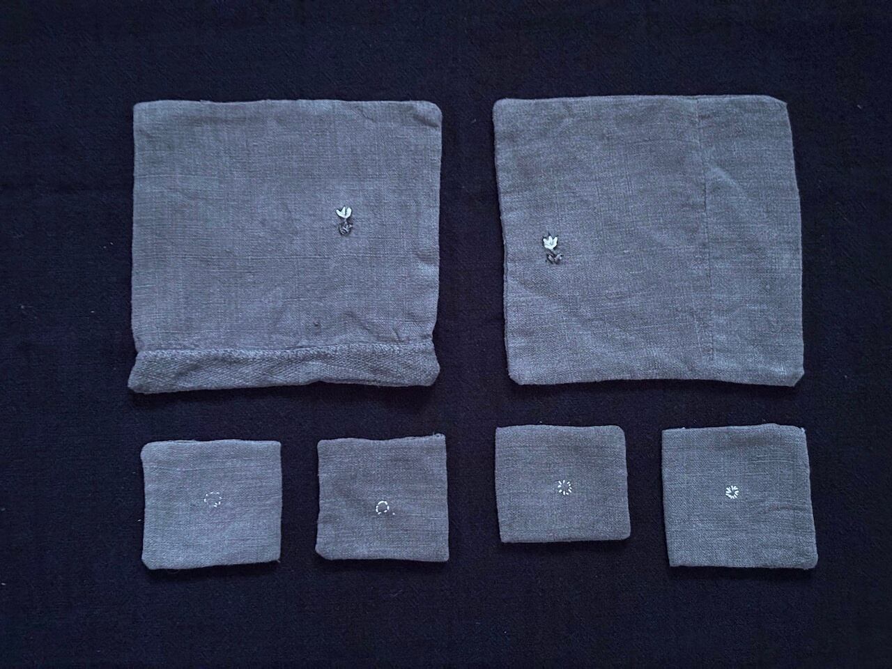大きなコースターには花の刺繍を、小さなコースターには中央に⚪︎の印をつけました。