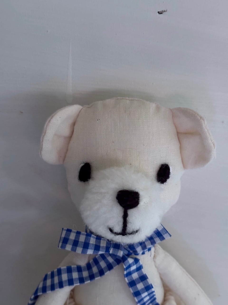 お顔は、見つめるたびに少しでも笑顔になれるようにと願いながら刺繍しています。