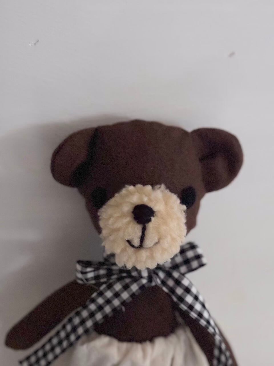 茶くま:身長約25cm 素材:麻 ポリエステル綿 刺繍糸