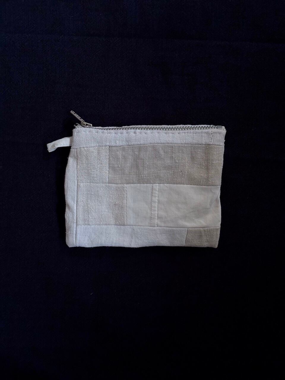 様々なアンティークのリネンを繋ぎ合わせて作ったポーチです。
