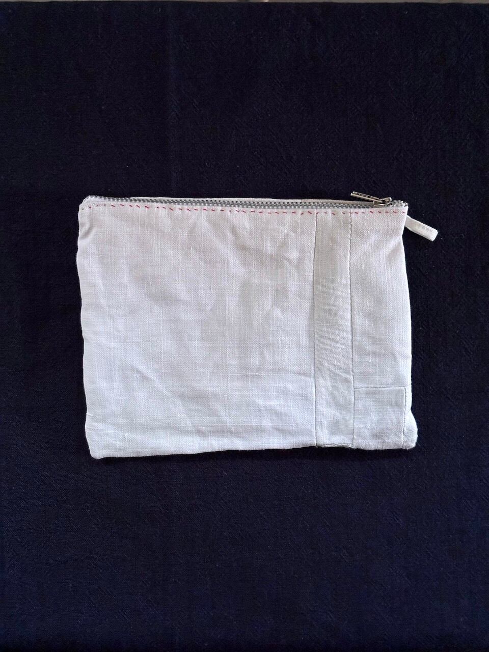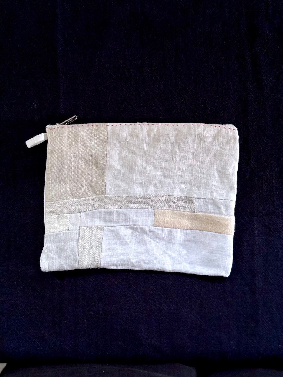 様々なアンティークのリネンを繋ぎ合わせて作ったポーチです。