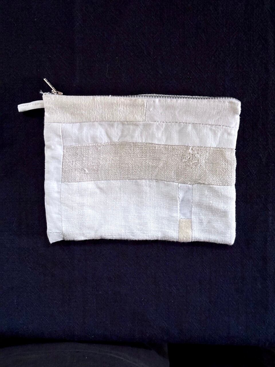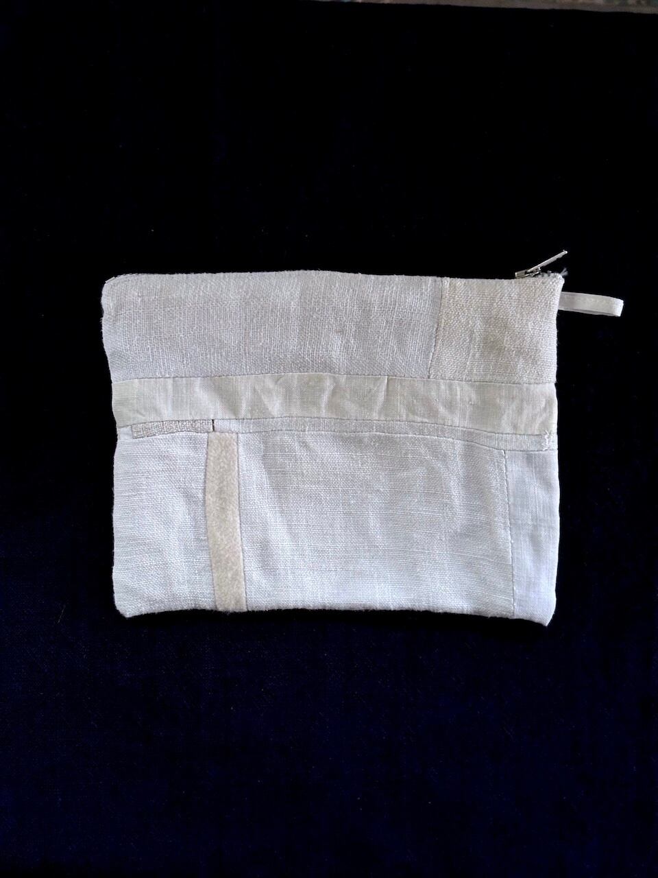 様々なアンティークのリネンを繋ぎ合わせて作ったポーチです。
