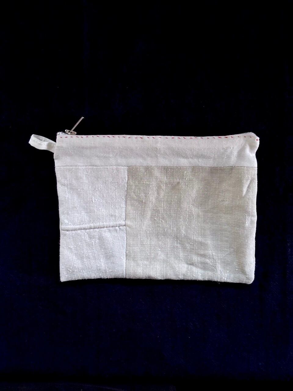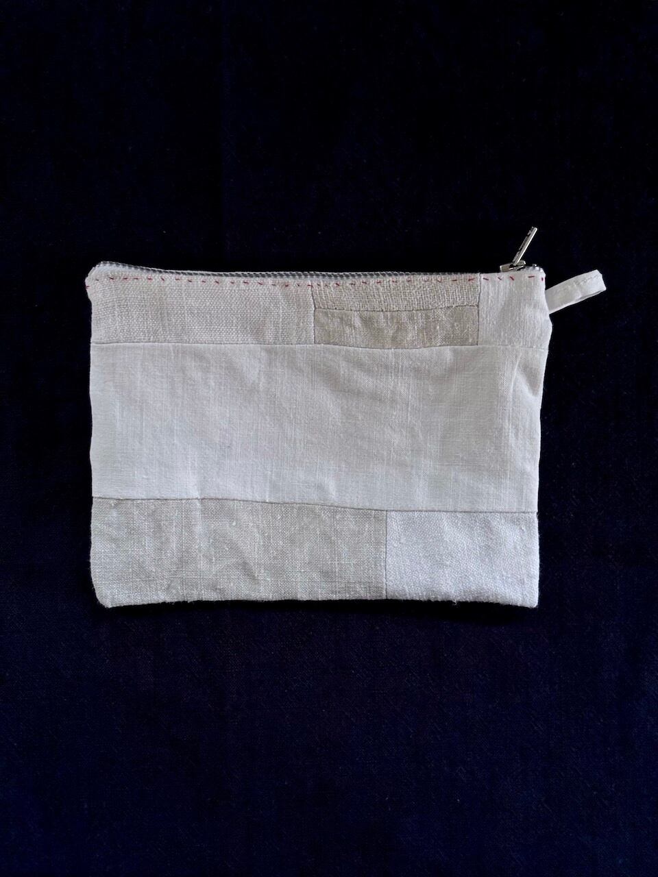 様々なアンティークのリネンを繋ぎ合わせて作ったポーチです。