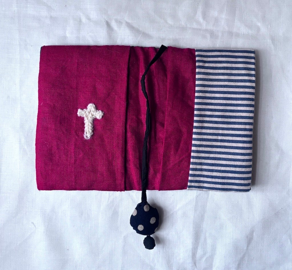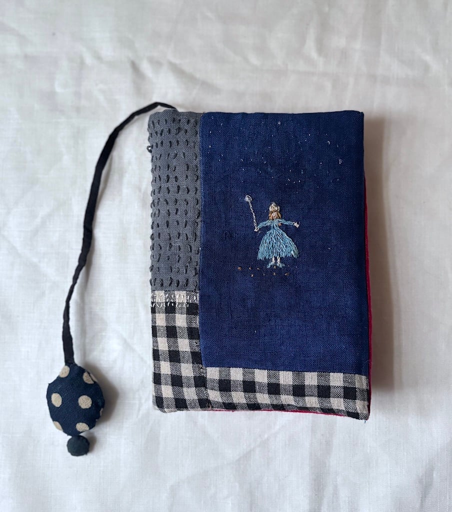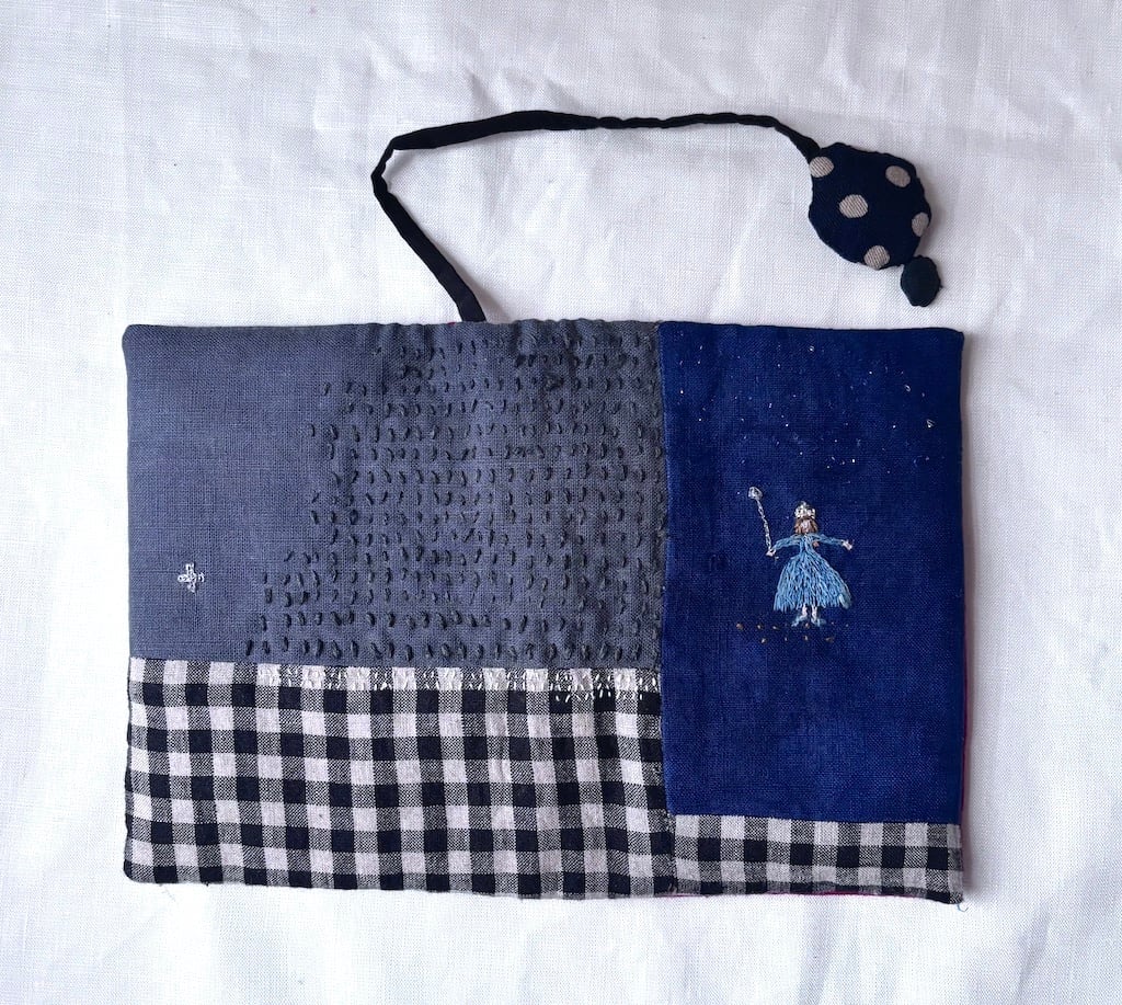 王女様が刺繍されてる麻の布は,自分で染めました。