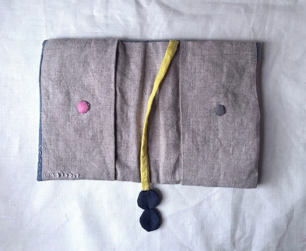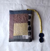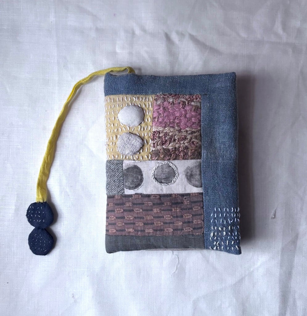 黒のドットも、昔、芋バンを押して作った布のカケラです。