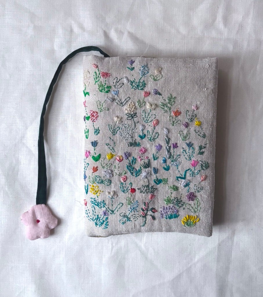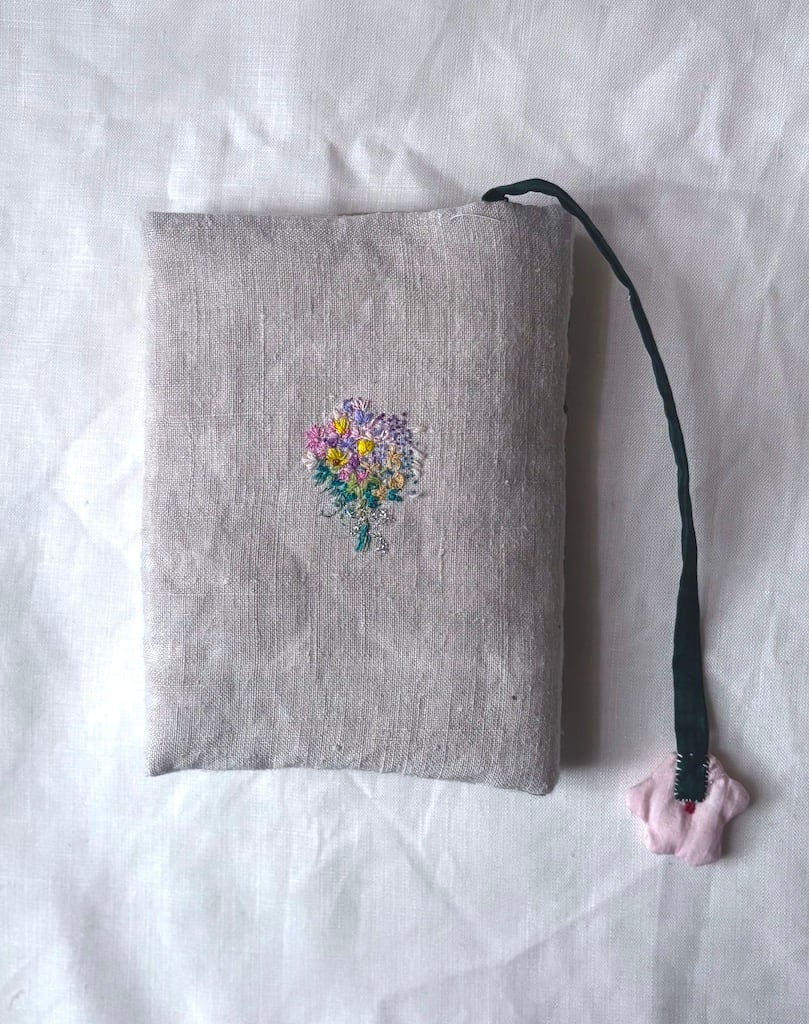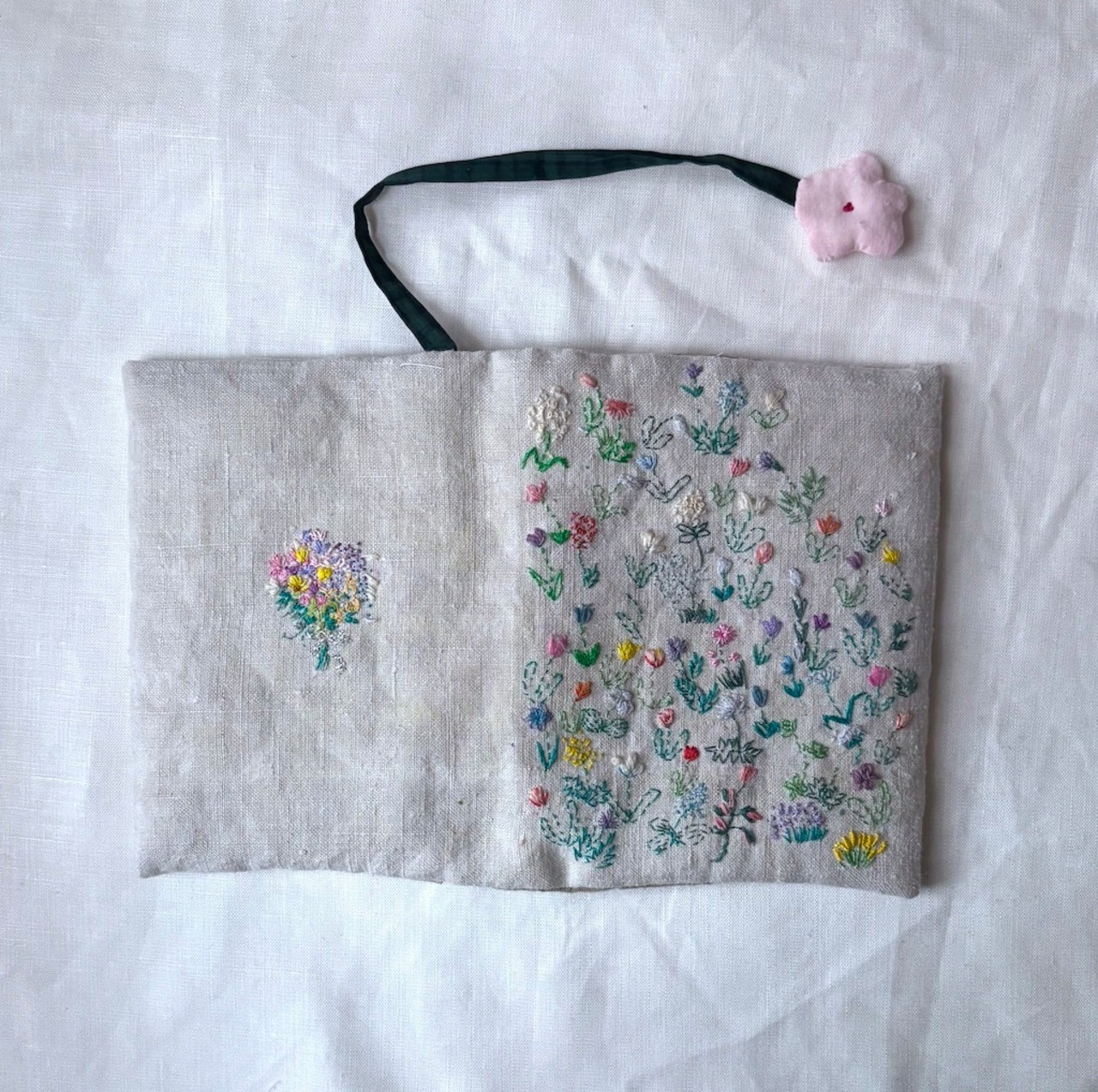 その花を積んで 花束にし、裏表紙に刺繍しました。